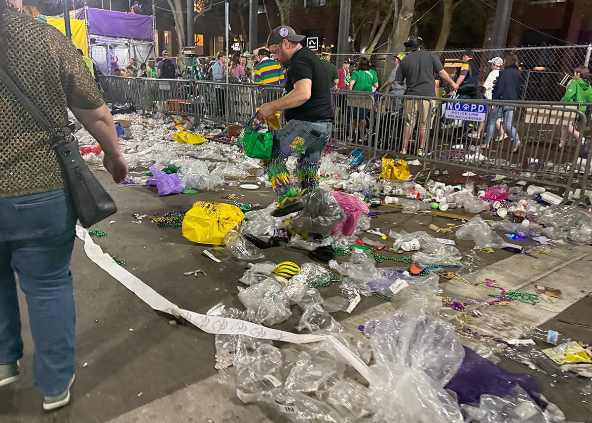 I would also say, if you don’t catch a flying necklace and it hits the ground, it will break. Sooo many broken beads and so much plastic trash for the sanitation crews who come in each night to get the streets spick and span to start all over again tomorrow.